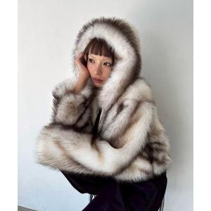 【Musee別注】QTUME クチューム ファーブルゾン 24559 レディース ミンクライク フェイク ファーコート ジャケット スタンドネック ボーダー