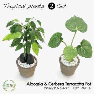 フェイクグリーン ミニ 卓上 造花 光触媒 人工観葉植物 CT触媒 消臭 小さい インテリアグリーン かわいい おしゃれ アロカシア / トロピカルプランツセット