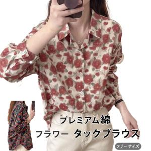 春 ブラウス シャツ レディース 花柄 ブロード フェミニン 長綿 プレミアム 綿 心地いい着心地 肌触り フラワー 植物 長袖 ゆったりシルエット 脇タック 立体