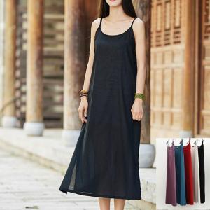 夏物新作 レディース コットン サマー インナー キャミソール ロング マキシ ロング丈 ノースリ 下着 綿 ローン 春 夏 ナチュラル ガーゼ 涼感 涼しげ 夏素材