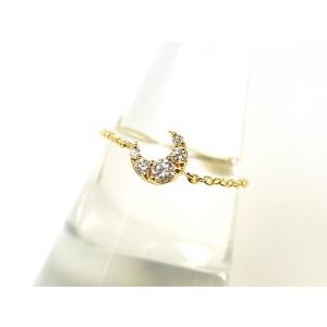 ダイヤモンド K18YG チェーンリング 指輪 ダイヤモンドが月にきらめく スライド式でサイズ調整可能 受注品