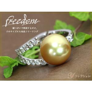 freedomフリーダム ゴールデンパール11mm PT900リング 指輪 上質ダイヤ0.54ct 肉厚 蝶つがいでサイズ自由自在(±2)に動かせる最新技術のジュエリー