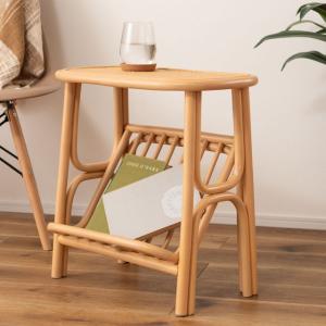 天然木 マガジンラック付きサイドテーブル 軽量 ブックスタンド 玄関収納 スリッパラック