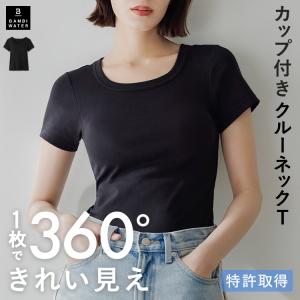 カップ付き 半袖 クルーネック Tシャツ トップス ブラトップ 盛れる 育乳 締め付けない 大きいサイズ バストケア ホールド力 バンビウォーター 爆買