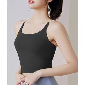 レディース バッククロスフィットネスヨガウェアキャミブラトップ カップ付きピラティスウェア