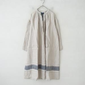 トゥジュー TOUJOURS *スキッパーネックリネンワンピース*F麻キナリ柄入りギャザースモックワイドドレス(2-2507-367)【21H52】