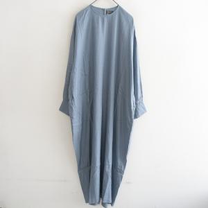【定価4.1万】ウィロウ WIRROW *キュプラコットンドレス*1ツイルAsh Blueノーカラーワンピース薄手(25-2509-542)【32J52】