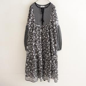 ミナペルホネン mina perhonen *pesce コットンシルクプリントAラインドレスワンピース*36総柄(33-2508-506)【32I52】