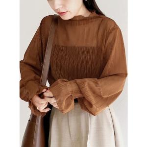ブラウス シャツ ボトルネックシアーストライプブラウス レディース