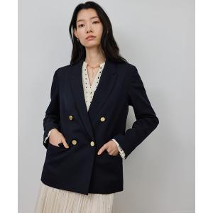ジャケット テーラードジャケット ストレッチギャバジン金ボタン紺ブレザージャケット レディース