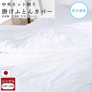 【安心の日本製】掛布団カバー 中央ネット張り 150x200 シングル T/Cブロード 国産 三河産 白 掛けふとんカバー 和風 旅館風 来客用 洗濯可
