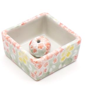 角型香炉 部屋香・線香立て 桜柄 美濃焼 国産品 陶器