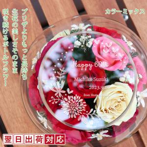 還暦祝い 女性 プレゼント 花 プリザーブドフラワーよりも長持ち HAPPYマザーフラワー 天面刻印 カラーミックス 翌日発送コース 還暦 お祝い ボトルフラワー