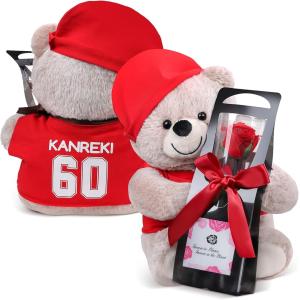 還暦祝い 女性 プレゼント ぬいぐるみとプリザーブドフラワー ギフトセット 一輪のバラ 60歳 花 誕生日祝い 母親(レッド, 大)