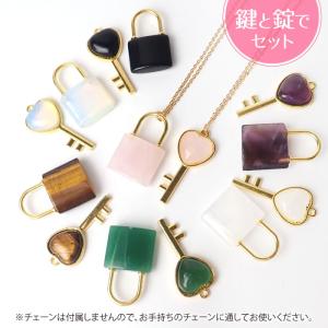 天然石 【1個】 南京錠&ハートキー チャーム セット ペンダント ハート ペア アクセサリー