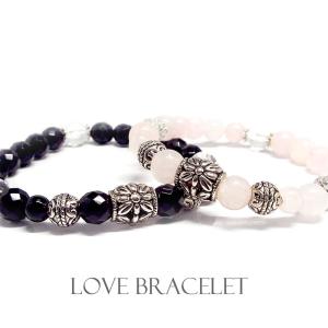 天然石 パワーストーン ブレスレット ペアアクセサリー LOVE BRACELET オニキス×ローズクォーツ