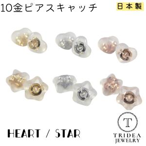 選べるピアスキャッチ 1ペア分(2個) 10金 ハート型 星型 ピンク ホワイト イエローゴールド ダブルロック シリコン K10 Au416 爆買