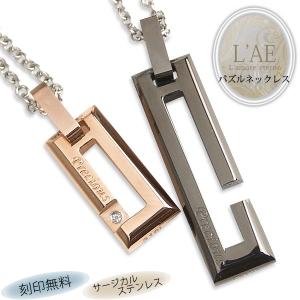 ペアネックレス 刻印無料 ステンレス シンプル パズル ネックレス ペア サージカルステンレス ローズゴールド ブラック ペンダント ペアアクセサリー 名入れ