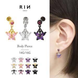 ボディピアス ラブレット 蝶 軟骨ピアス 16G 14G バタフライ 揺れる 可愛い 片耳用