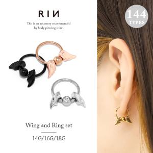 ボディピアス 天使 悪魔 14G 16G 18G ワンタッチ セグメントリング フープ ビーズリング 耳たぶ 片耳用