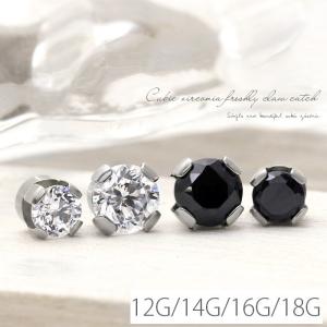 キャッチ ボディピアス ジュエル ブラック 黒 12G 14G 16G 18G 軟骨ピアス キュービックジルコニア 片耳用
