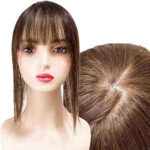 部分ウィッグ ヘアピース 分け目自由自在 総手織り ポイントピース ミセス 自然 かつら 女性(ナチュラルブラウン, 9x14cm)