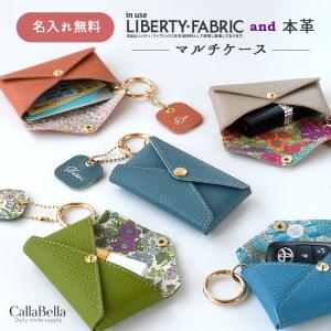 マルチケース マルチポーチ カラビナ付き 名入れ アクセサリーポーチ 小物入れ コンパクト シュリンクレザー 本革 ミニポーチ おしゃれ 花柄 リバティ生地