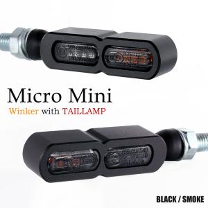 テールライト付 マイクロミニウインカー ダブル リア用 LED 車検対応 ブラック スモーク レンズ 12V 汎用 アルミ製 左右セット バイク カスタム パーツ 交換