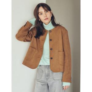 ジャケット ノーカラージャケット パッチポケットコンパクトスエードジャケット レディース