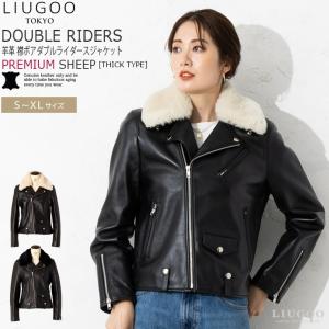 LIUGOO 本革 襟ボアダブルライダース レディース リューグー DRY09LA 本革レザージャケット 革ジャン ムートン