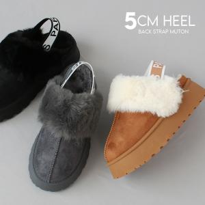 ブーツ もふぽか厚底チャンキーヒールムートンサボ レディース