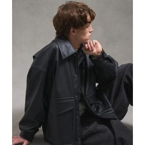 ブルゾン アウター ビンテージライクオーバーサイズレザーブルゾン メンズ
