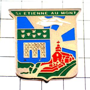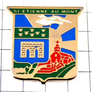 ピンバッジ・赤い教会や白い鳥かがやく太陽サン=テティエンヌ=オー=モン紋章◆フランス限定ピンズ◆レアなヴィンテージものピンバッチ