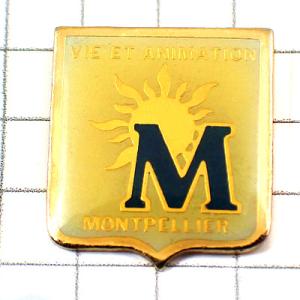 ピンバッジ・アルファベットMと太陽の紋章モンプリエ◆フランス限定ピンズ◆レアなヴィンテージものピンバッチ