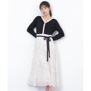 ワンピース モール刺繍ドッキングニットワンピース