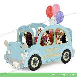 誕生日カード バースデーカード 立体 犬 車 飾れる グリーティングカード パーティーカー ドッグ グリーティングライフ メール便発送可