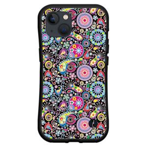 スマホケース iPhone 15 アイフォン フィフティーン 耐衝撃 ハイブリッドケース ストラップホール付 北欧風花柄type2ブラック
