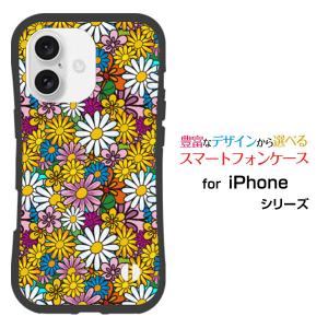 スマホケース iPhone 16 アイフォン シックスティーン 耐衝撃 ハイブリッドケース ストラップホール付 フラワーアート 花 はな カラフル 鮮やか 絵
