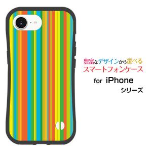 スマホケース iPhone 16e 耐衝撃 ハイブリッドケース ストラップホール付 カラフルストライプ type002 可愛い(かわいい) ポップ