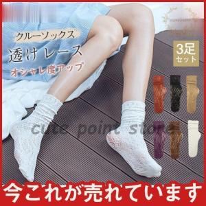 靴下 レディース 総柄レース カジュアル 雰囲気パンプス用 3足セット 透け クルーソックス くつした おしゃれ レース 夏 ソックス