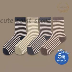 ソックス 横縞 レディース 靴下 5足セット おしゃれ シンプル 韓国風 安い 通勤 通学 普段使い 選べる コットンソックス 春 秋