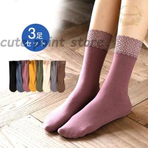 靴下 ソックス レディース 厚手 快適 レース 安い 通勤 通学 3足セット 無地 綿混 秋冬 弾性 抗菌防臭 伸縮性 シンプル 快適
