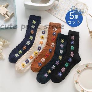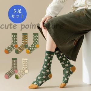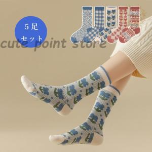 ソックス レディース 靴下 花柄 韓国風 大 女性用 婦人用 普段使い 快適 上品 抗菌防臭 5足セット おしゃれ かわいい 通勤 通学