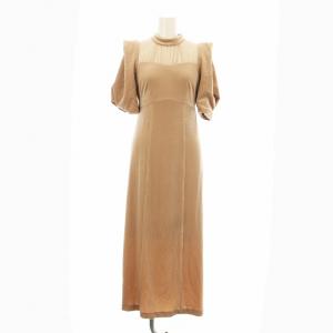 リリーブラウン 24AW シアーネックベロアドレス ワンピース ロング マキシ 五分袖 リボン 36 ピンクベージュ LWFO245102