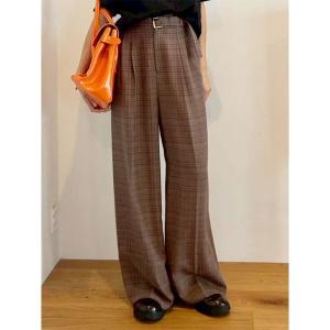 スラックス パンツ ベルト付きタックワイドパンツ レディース