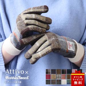 ハリスツイード 革手袋 レディース スマホ対応 本革 レザーグローブ リブ付 ブランド Attivo ATHT04 CW