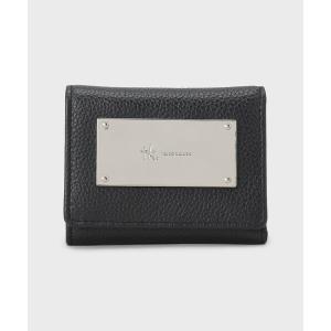 財布 「リアルレザー」プレート三つ折りウォレット メンズ レディース