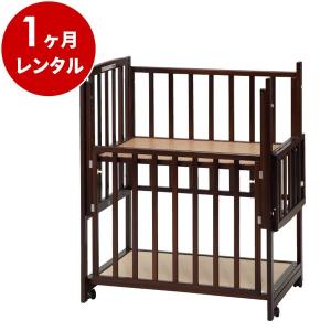 ベビーベッド レンタル 1ヵ月 らくらくダブルドアー90 超小型 ダークブラウン マット別 日本製 ミニベッド ベビー用品レンタル