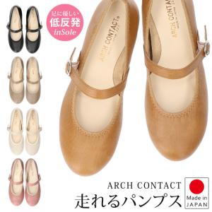 アーチコンタクト パンプス ローヒール 痛くない 柔らかい 歩きやすい かわいい ラウンドトゥ 39075 疲れない 立ち仕事 走れる ストラップ 日本製 通勤 靴