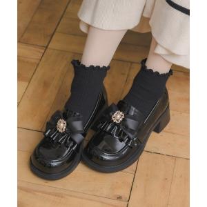 ローファー ローヒールビジュリボンローファー レディース